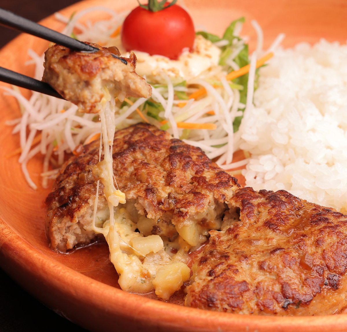 #びっくりドンキー のハンバーグの中にポテトサラダととろけるチーズを包んで焼き上げたポテサラパケットディッシュ🥗