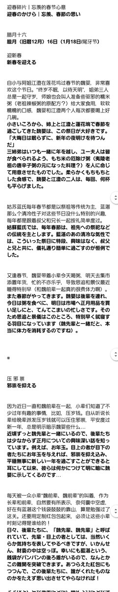 蓮花塢の年越し尊い😭藍氏の春節のらしさ。思追&景儀たちをくたくたになるまで連れ回す魏嬰のぴょんぴょん具合や、魏嬰の財布=藍湛も相変わらず😂