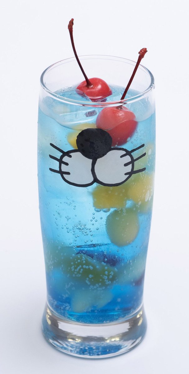 ブルーの透き通った炭酸ドリンクに、ごろごろ入ったフルーツがカラフルに見え隠れ☆ぼのぼのの表情はランダムなので、何が出るかはお楽しみ!