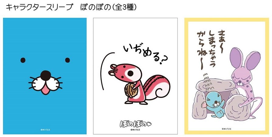 #ぼのぼの がトレーディングカード用サプライ商品になりました!カード1枚1枚を保護するスリーブ3種と、カードゲームの対戦はもちろん、デスクマットとしても使えて便利なラバーマット2種が登場です!