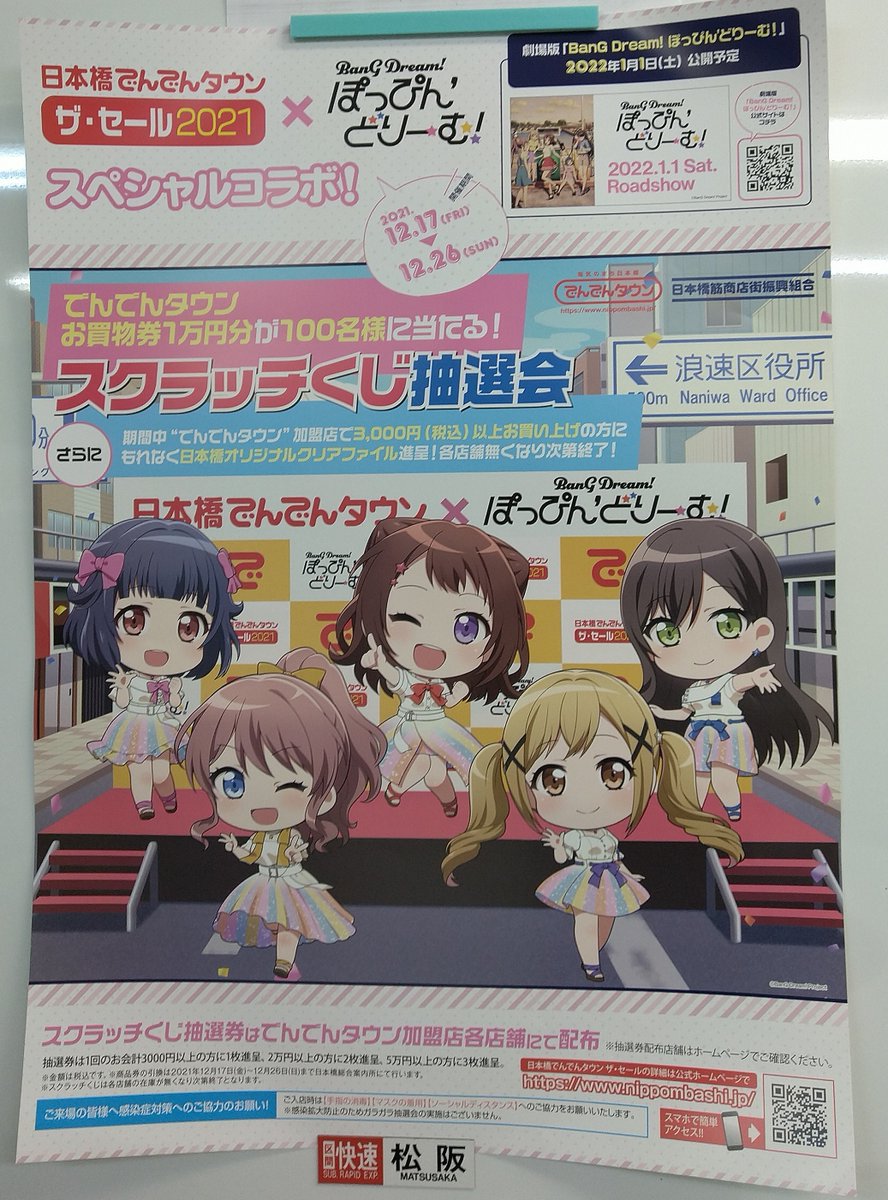 劇場版「BanG Dream! ぽっぴん'どりーむ!」日本橋でんでんタウン限定アクリルキーホルダーは明日11時より日本橋総合案内所で発売開始!!さらに5個以上お買い上げの方先着100名様にB2ポスターをプレゼント!!グッズの詳細は公式ホームページで!