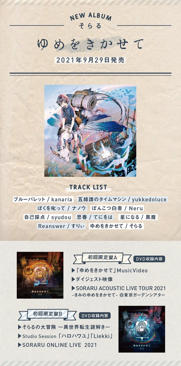 ㊗️本日発売のそらるさんNEWアルバム「ゆめをきかせて」CDアートワークと店舗特典デザイン担当しております㊗️