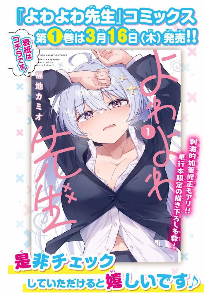 ✨🎊本日発売🎊✨ 2巻発売をさらに盛り上げよう! 「#よわよわ先生 」をつけてツイートしてください! ツイートしてくれた方の中から抽選で3⃣名様に、QUOカードをプレゼント🎁 ⏱ 2023年5月23日(火)23:59まで みなさんのツイートお待ちしております! 詳細はこちら👇 shonenmagazine.com/info/entry/202…