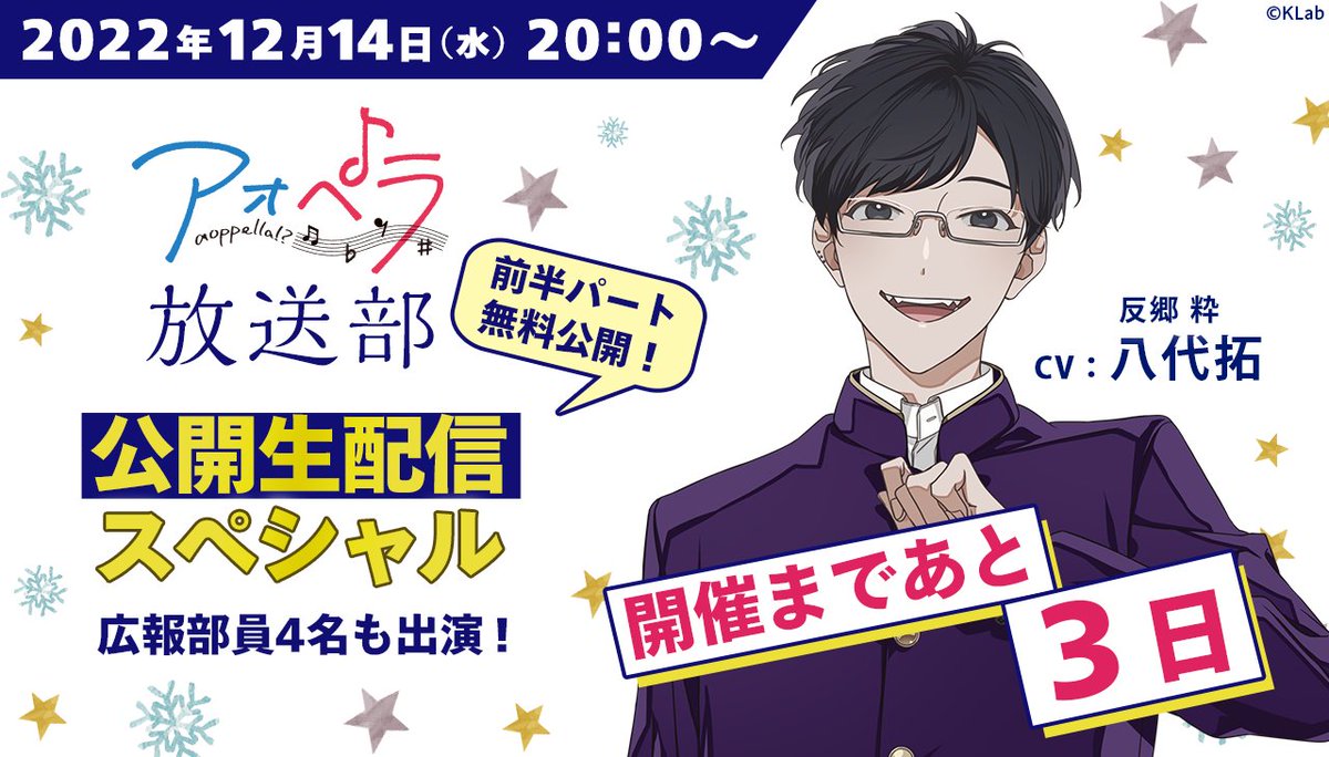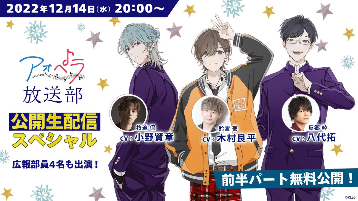 本日より、12/14(水)開催の「アオペラ-aoppella!?-放送部 〜公開生配信スペシャル~」配信チケットを販売📢