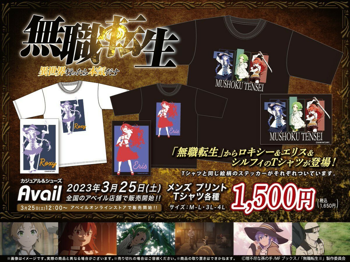 #アベイル より 3/25(土)~アニメ「 #無職転生 」のメンズTシャツが販売開始!