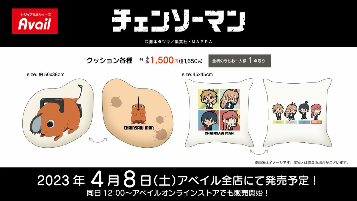 #アベイル より4/8(土)~「#チェンソーマン」のグッズが発売!
