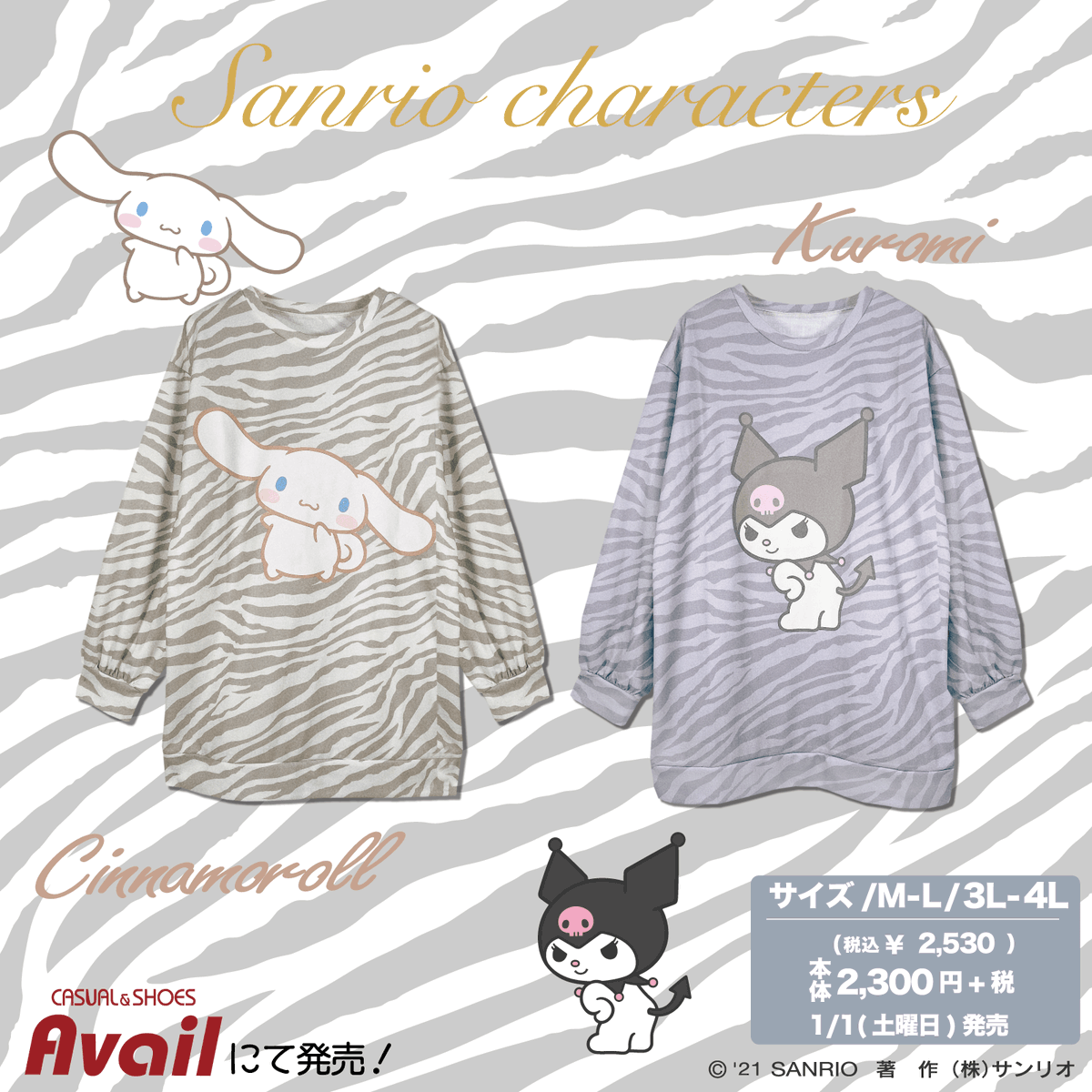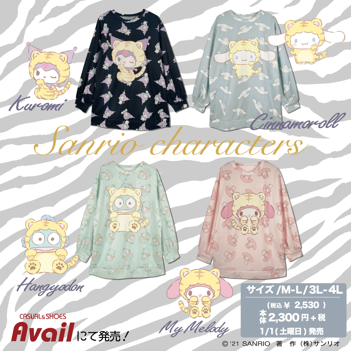 来年1/1(土・祝)~ #アベイル 限定で来年の干支・寅(とら)をモチーフにした総柄プルオーバーが発売!来年の開運祈願にも一役買ってくれることまちがいなし!?※1/1(土・祝)は休業店舗があります。詳細はアベイルHPの店舗検索をCHECK☆ sanrio.eng.mg/f17d3