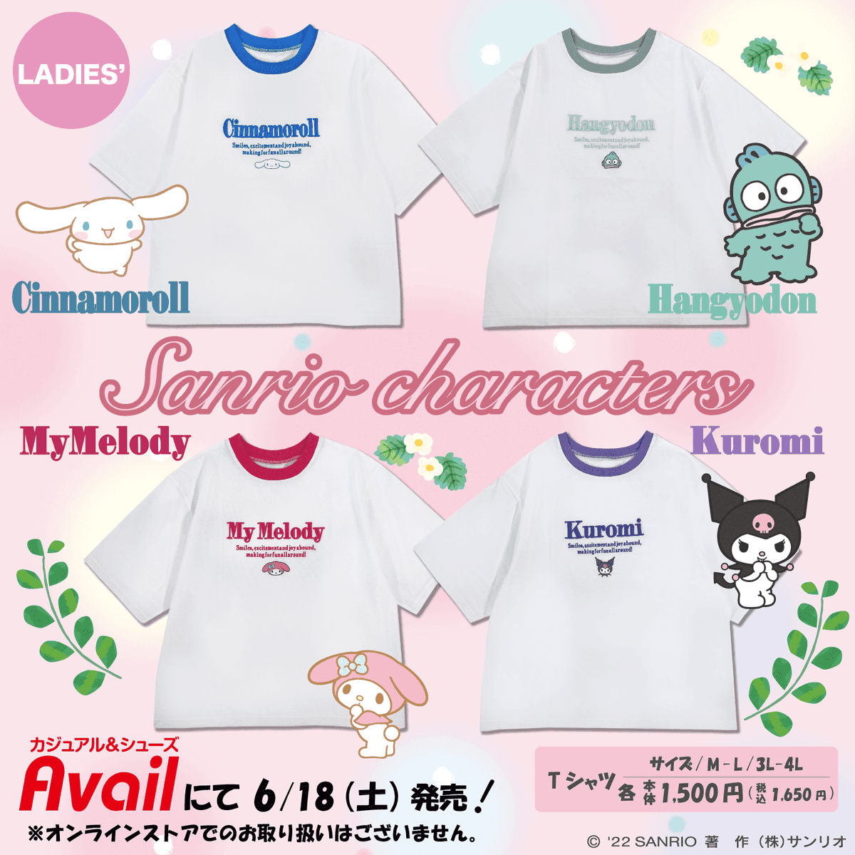6/18(土)~ #アベイル に #サンリオ キャラクターズの半袖Tシャツが新登場!ぷっくりとした刺繍がキュートなリンガーTシャツで夏を楽しんじゃおう♪ #avail 店舗→ sanrio.eng.mg/449c2 ※オンラインストアでのお取り扱いはございません。