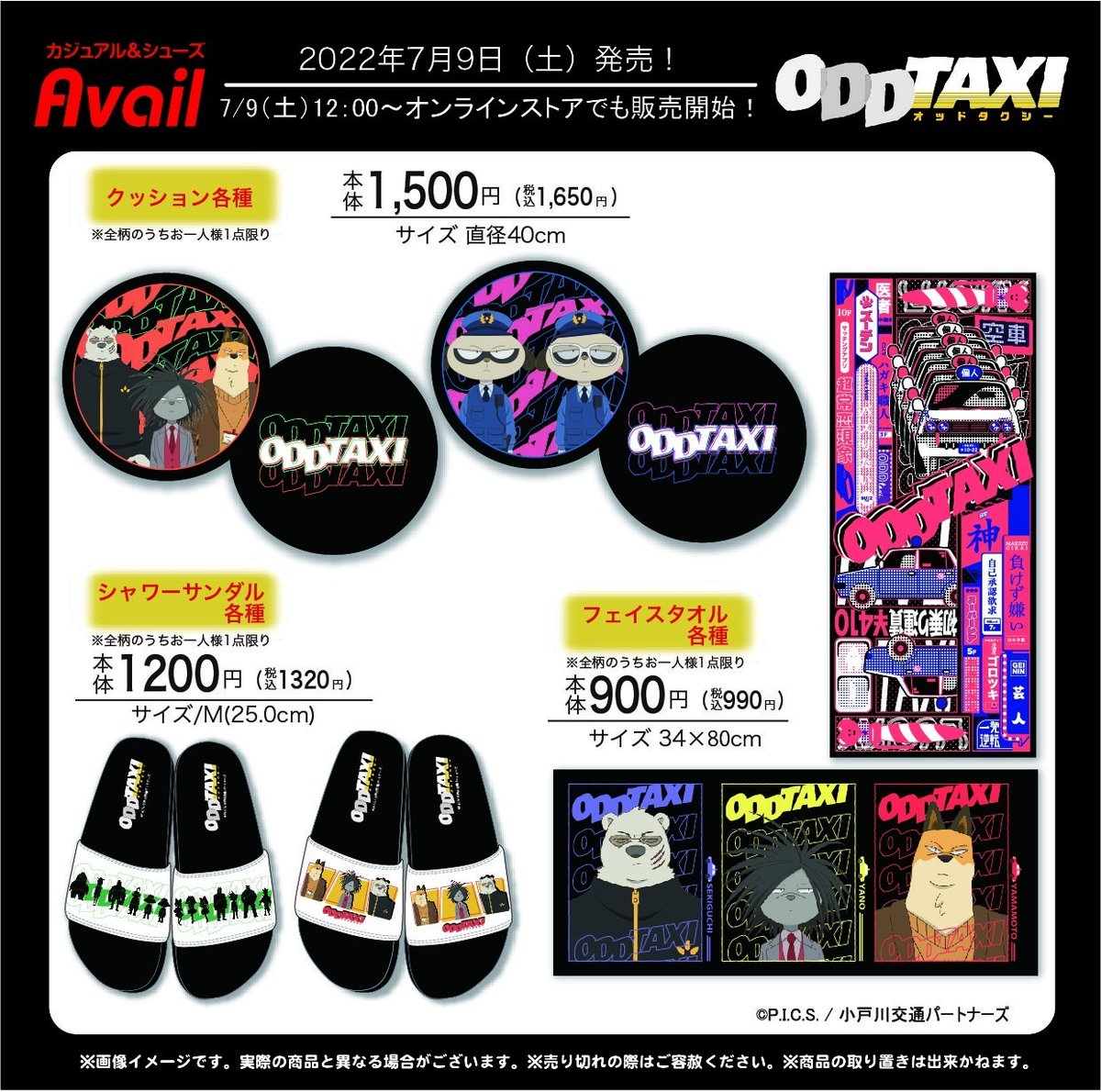 #アベイル より7/9(土)~「オッドタクシー」のコラボ商品が発売!