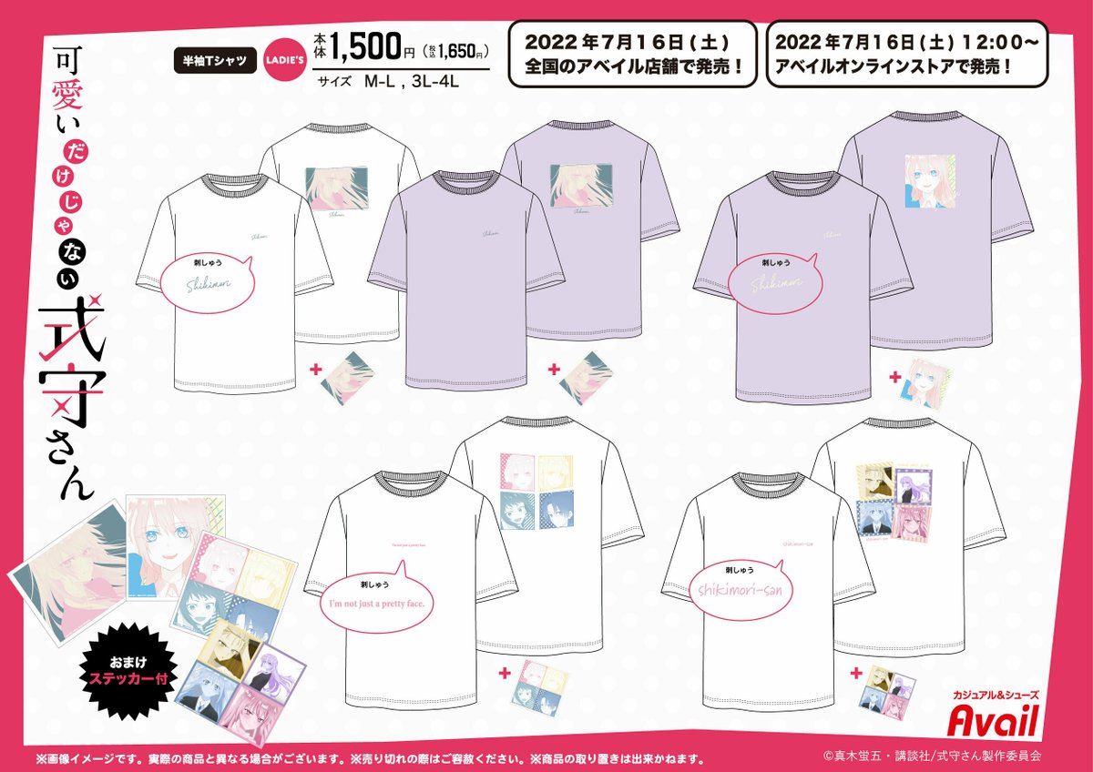 #アベイル より7/16(土)~TVアニメ「可愛いだけじゃない式守さん」のTシャツがシール付で登場!オンラインでも発売されます!