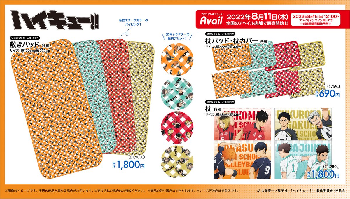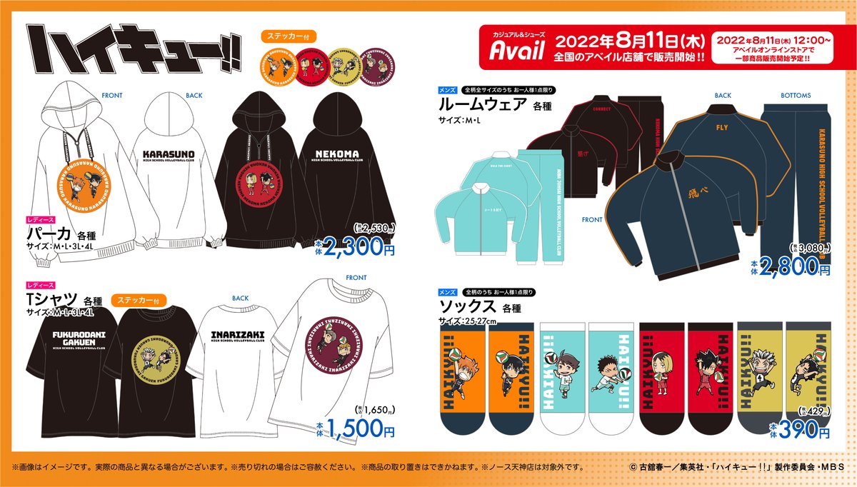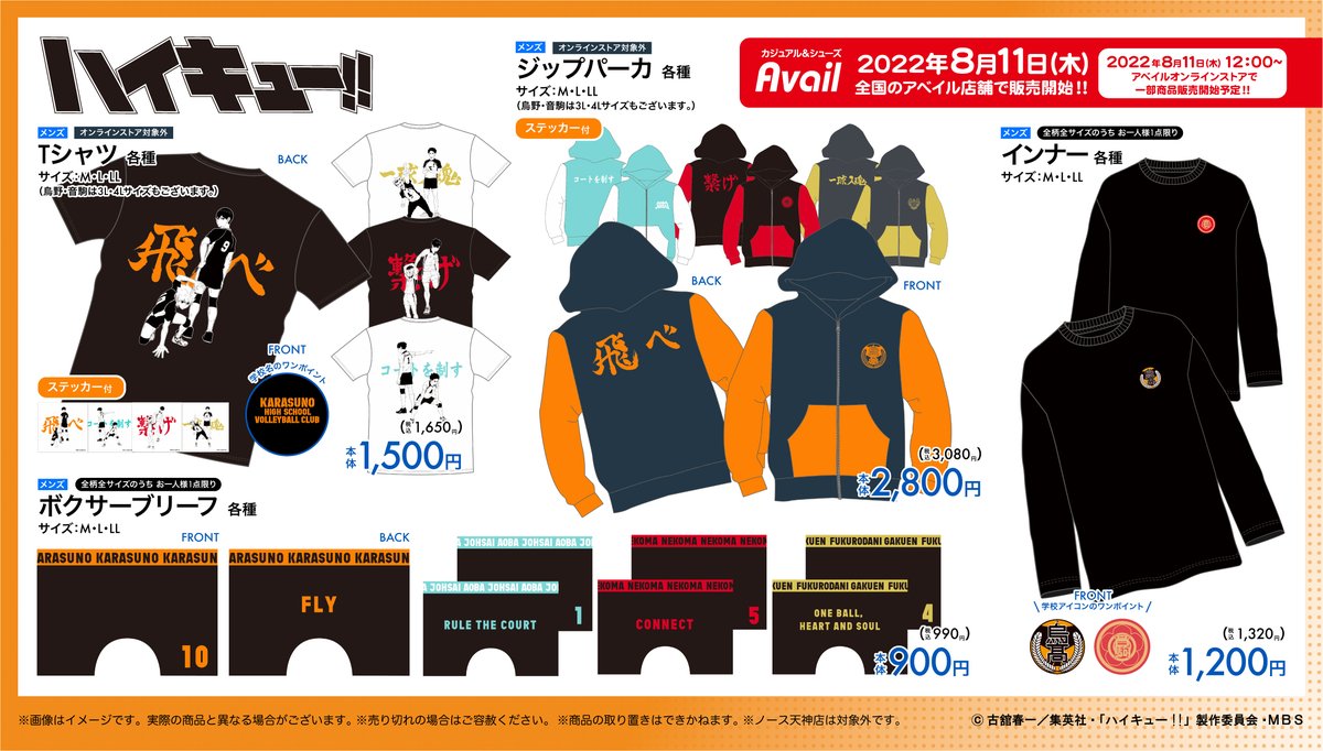 #アベイル より8/11(木)~TVアニメ『ハイキュー!!』のグッズが発売!一部商品はオンラインでも発売!