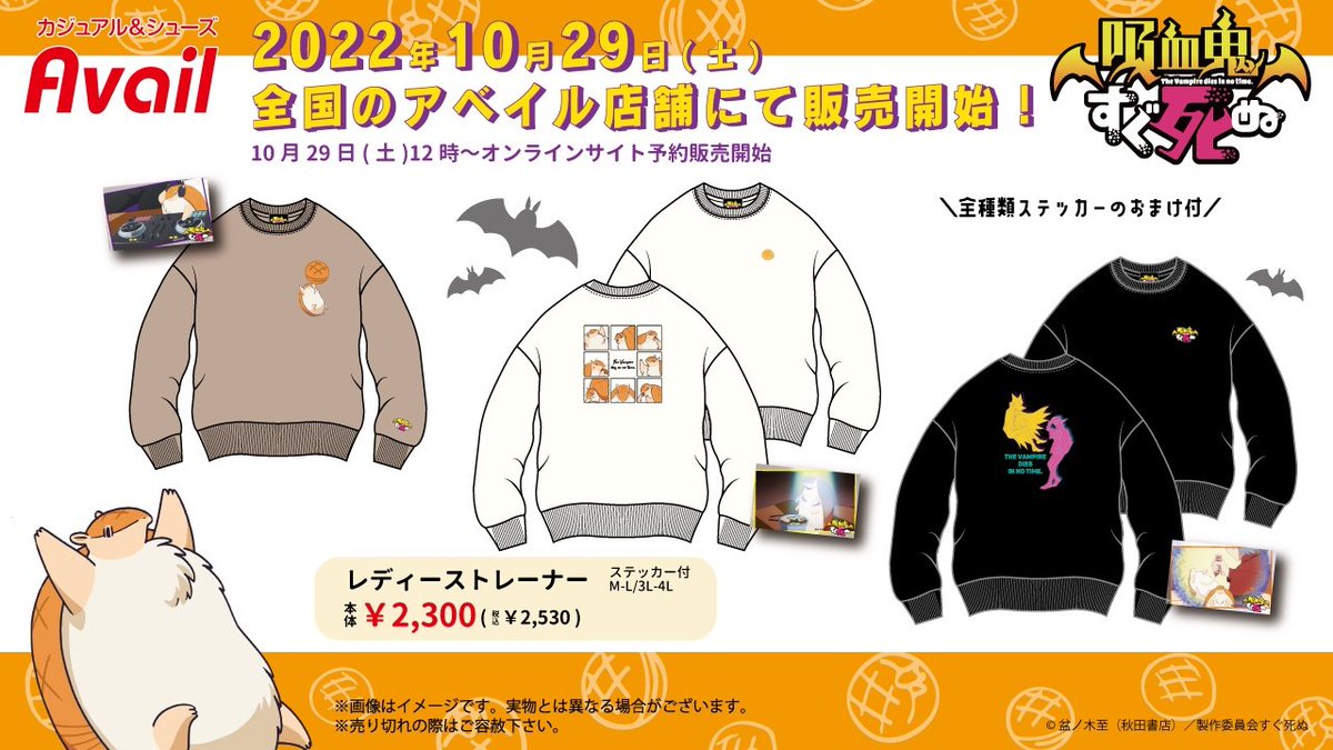 #アベイル より10/29(土)~「吸血鬼すぐ死ぬ」のレディーストレーナーが登場!