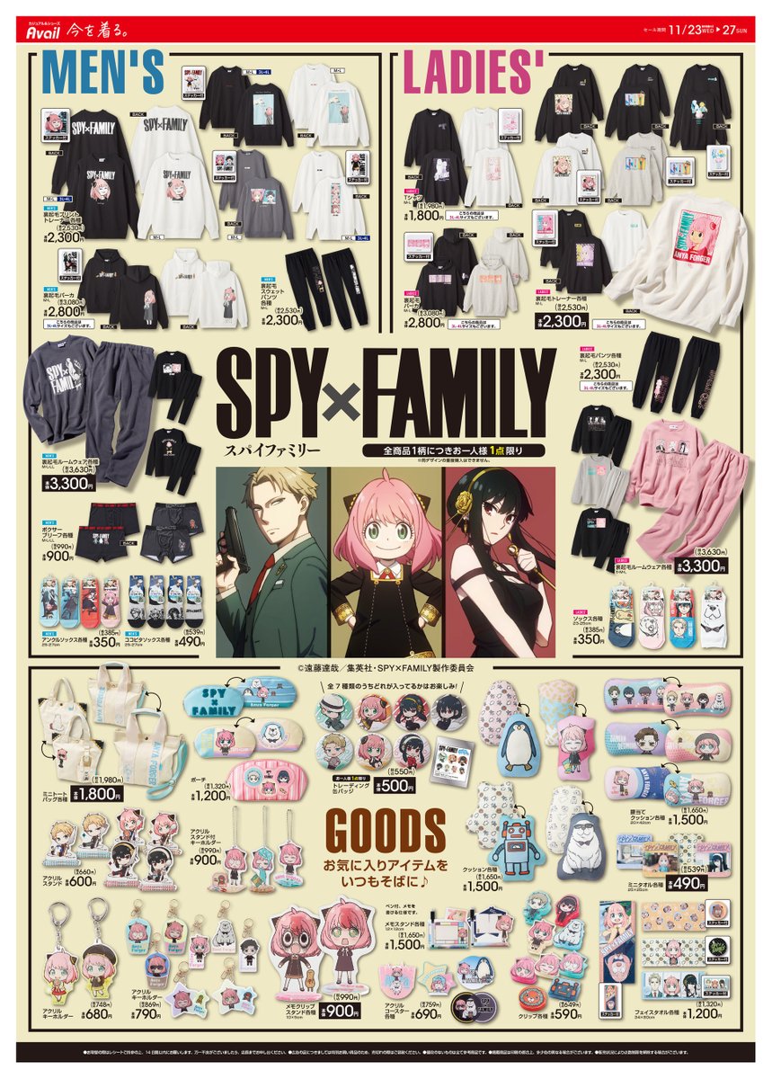 #アベイル より11/23(水)~『SPY×FAMILY』のグッズが発売!