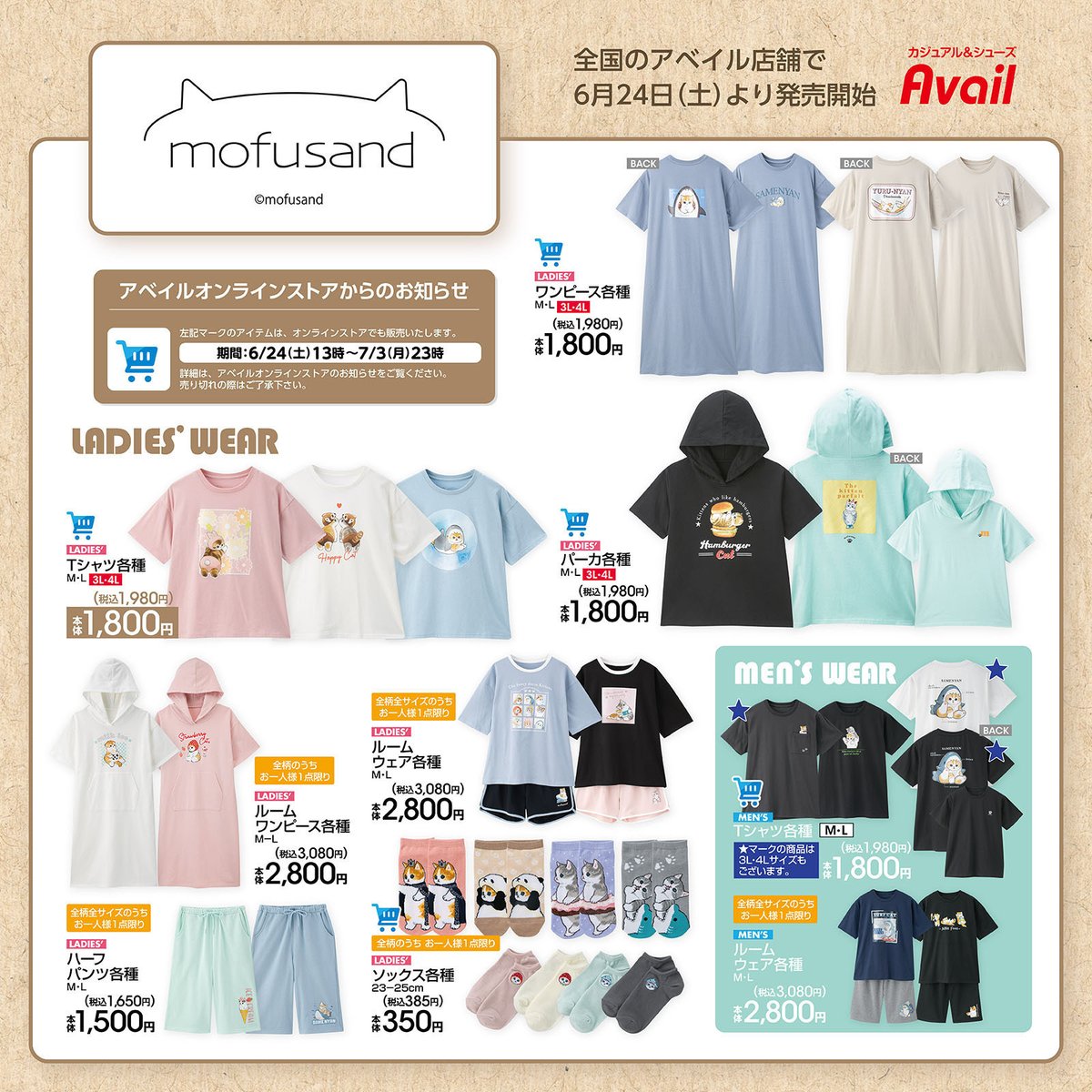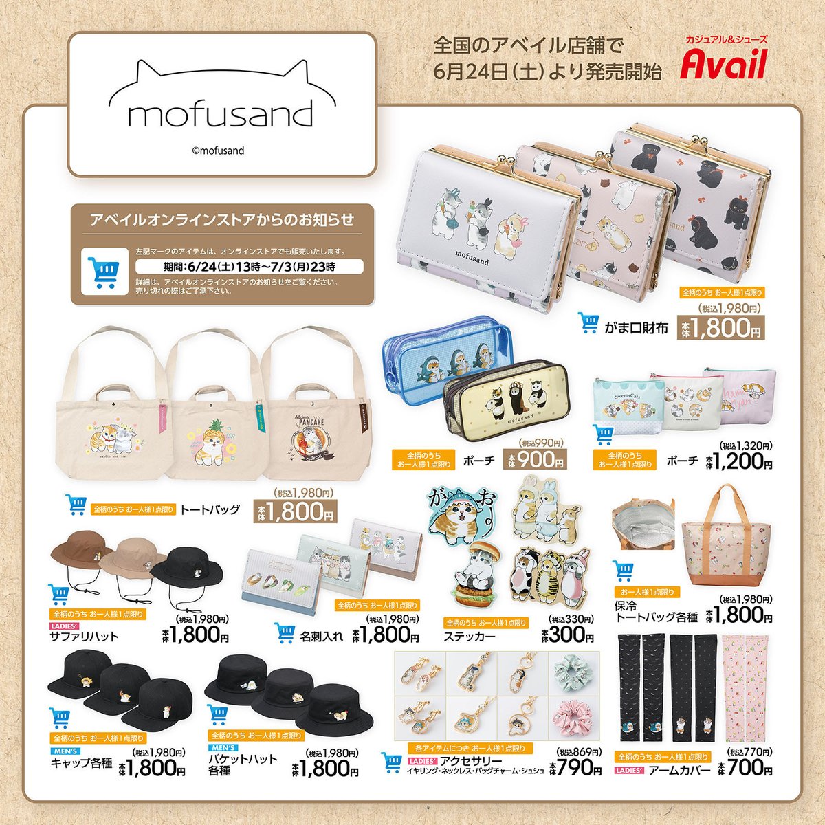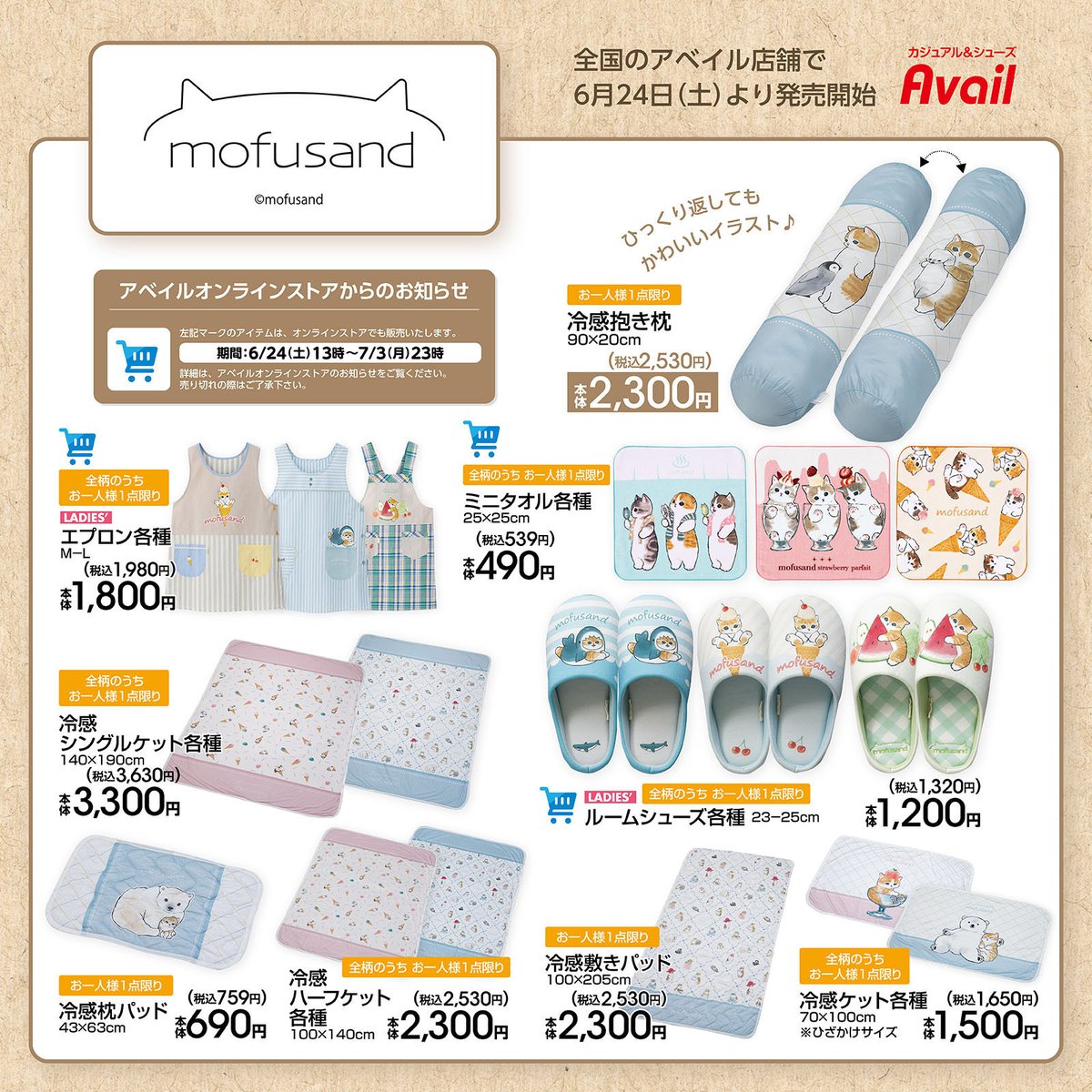 #アベイル より6/24(土)~「#mofusand」のグッズが発売!