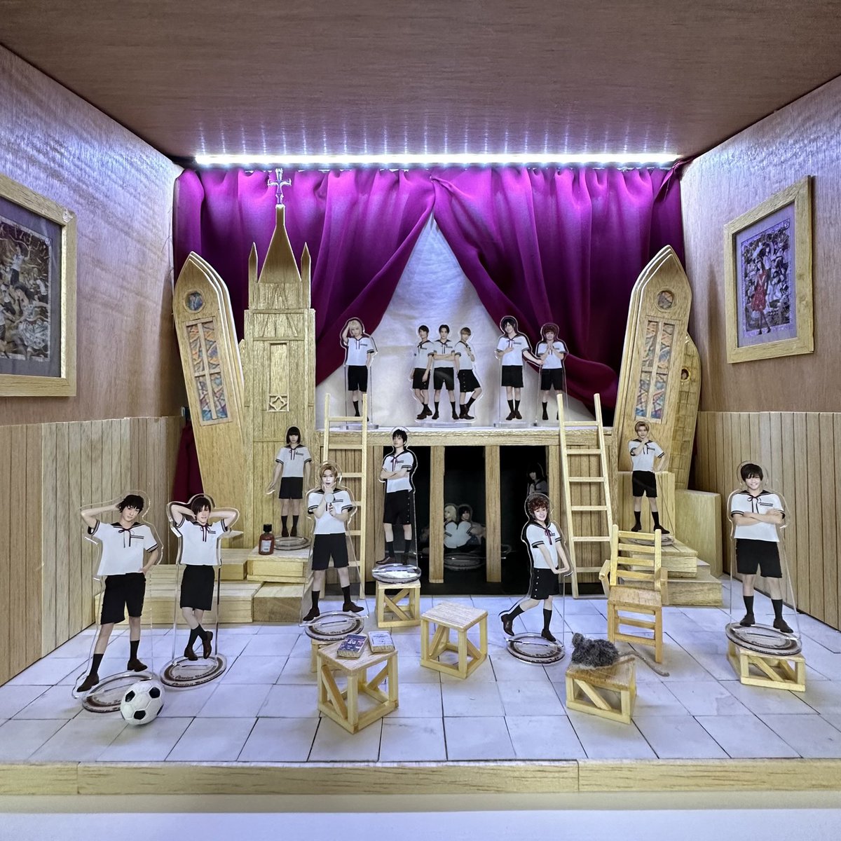 母が誕生日プレゼントといって舞台を再現した 『トマン†ギムナジウム』を作ってくれました❕ 本当に天音になった気分で楽しんで配置。 (幕も取り付けれるので夜は幕を閉めてこの子たちだけの空間作ってます⛪️🤫) #アマネギムナジウム #Blu_rayは10月5日発売です #てや!!!