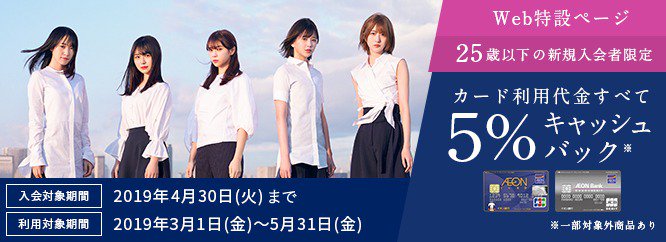 25歳以下で4/30(火)までに新規ご入会の方全員に、3/1(金)~5/31(金)の期間のカードご利用金額すべて5%キャッシュバック💰