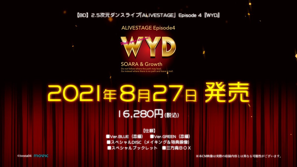 【BD】2.5次元ダンスライブ「ALIVESTAGE」Episode 4『WYD』のCMを公開!
