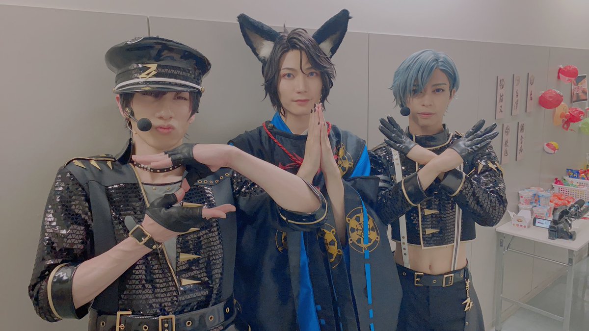 本番中、次のシーンのために袖でスタンバイしてるとき、青公演の時は俺から🤜🏻🤛🏻真修くんへ。緑公演の時は真修くんから🤜🏻🤛🏻俺へ、お互いにガンバレ!って声かけあってます☺️