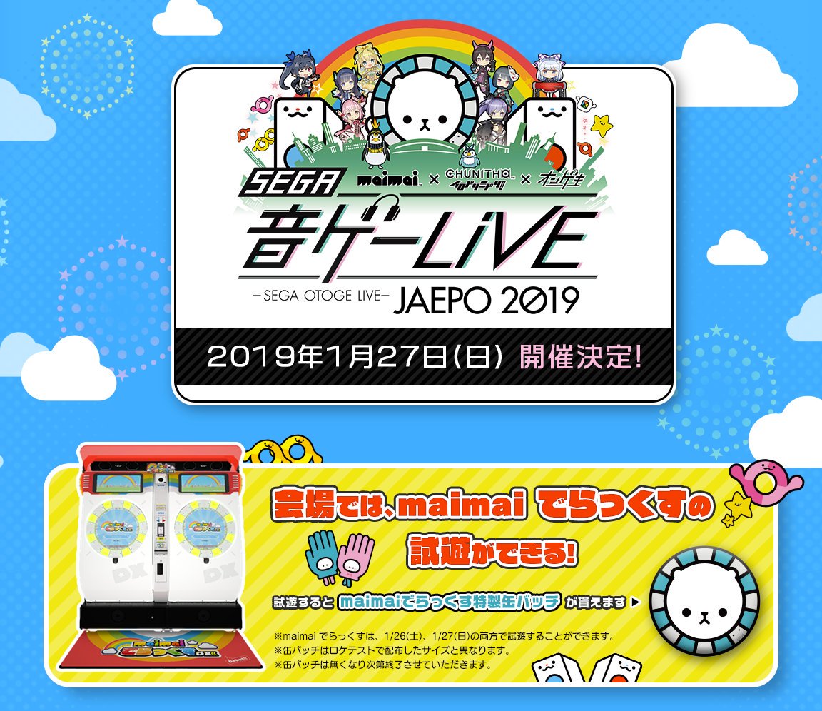 【SEGA音ゲーLIVE】本日1/27(日)12:00からはJAEPO 2019内で開催される「SEGA音ゲーLIVE JAEPO 2019」にてミニライブが開催!イロドリミドリからはなるとなぎが2ndライブおまけの部として参戦です!絶対炎上させていくぞ!! #セガ音ゲーライブ2019 #イロドリミドリ chunithm.sega.jp/jaepo2019/
