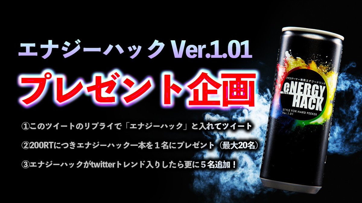 #エナジーハック Ver.1.01発売を記念してプレゼント企画します! 飲んだことのない方は是非この機会にご応募ください! ※締め切りは20日23時59分 たくさんの応募待ってます👀