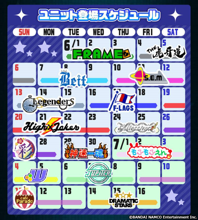 それぞれのユニットの皆さんが登場する期間中に全日ログインすると、登場ユニットのブロマイドが貰えます。