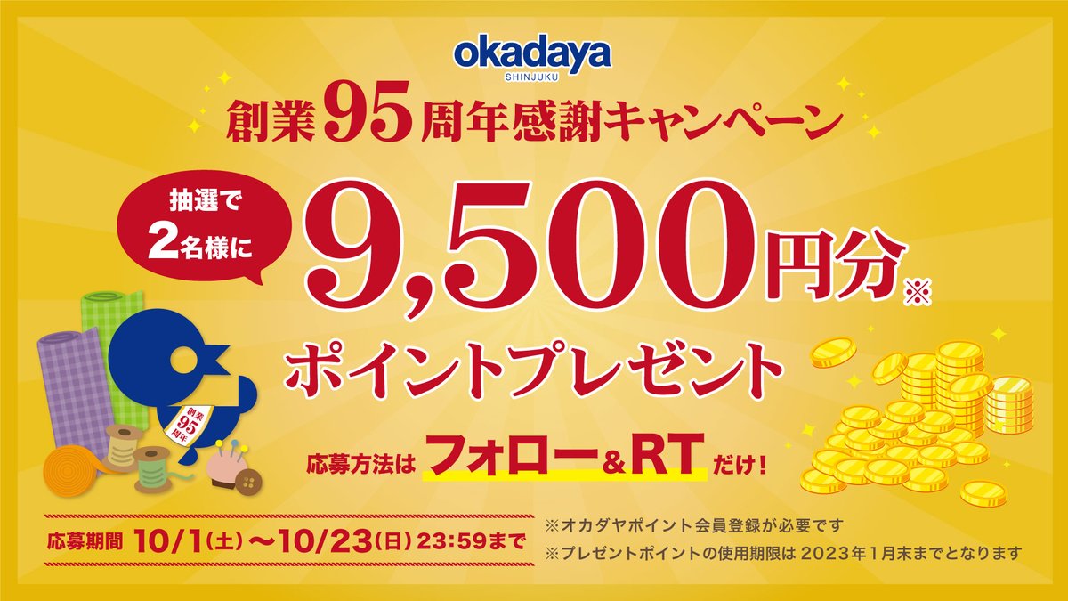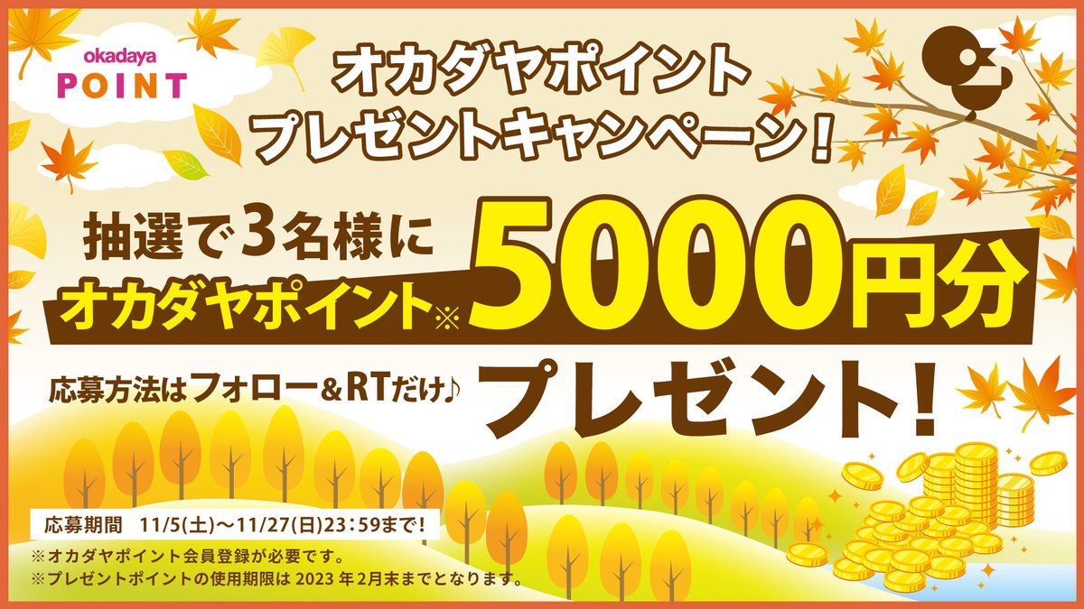 #オカダヤポイント 5,000円分💕抽選で3名様にプレゼント🎁
