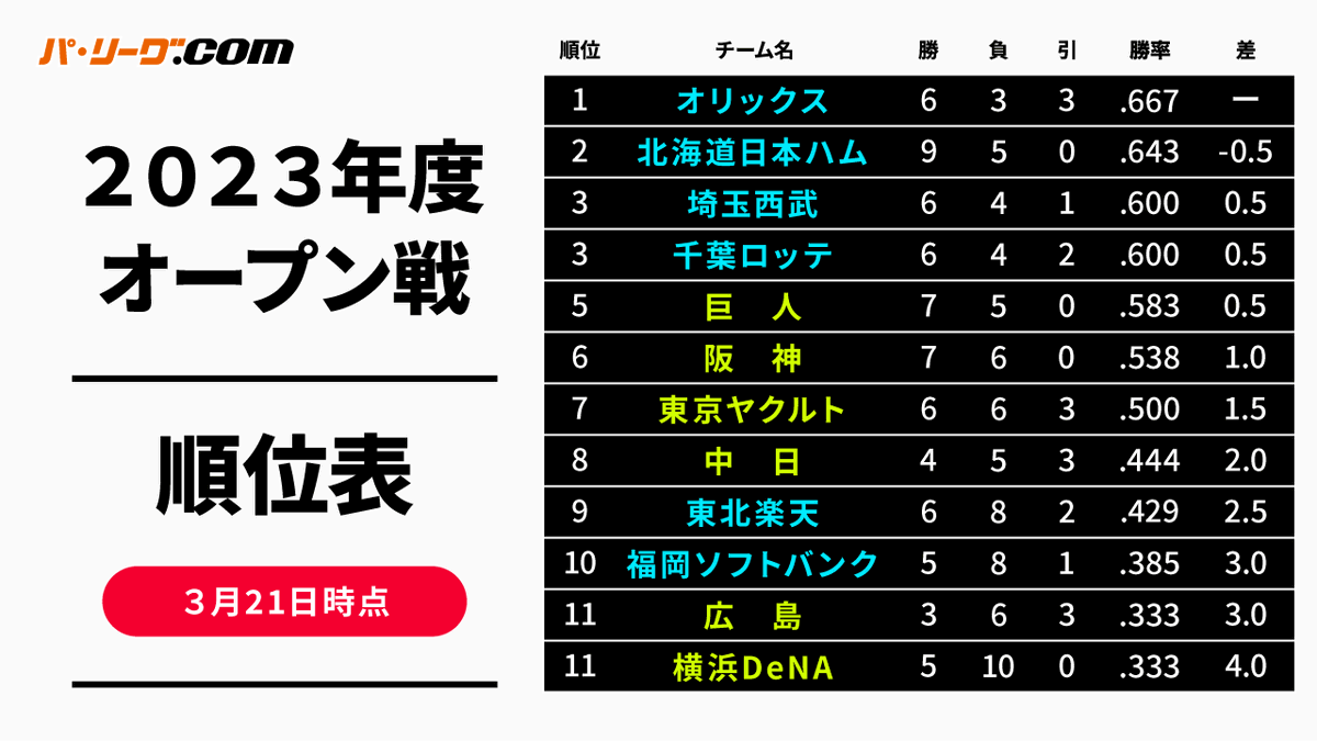 #オープン戦 個人成績ランキング(3/21時点)⚾️