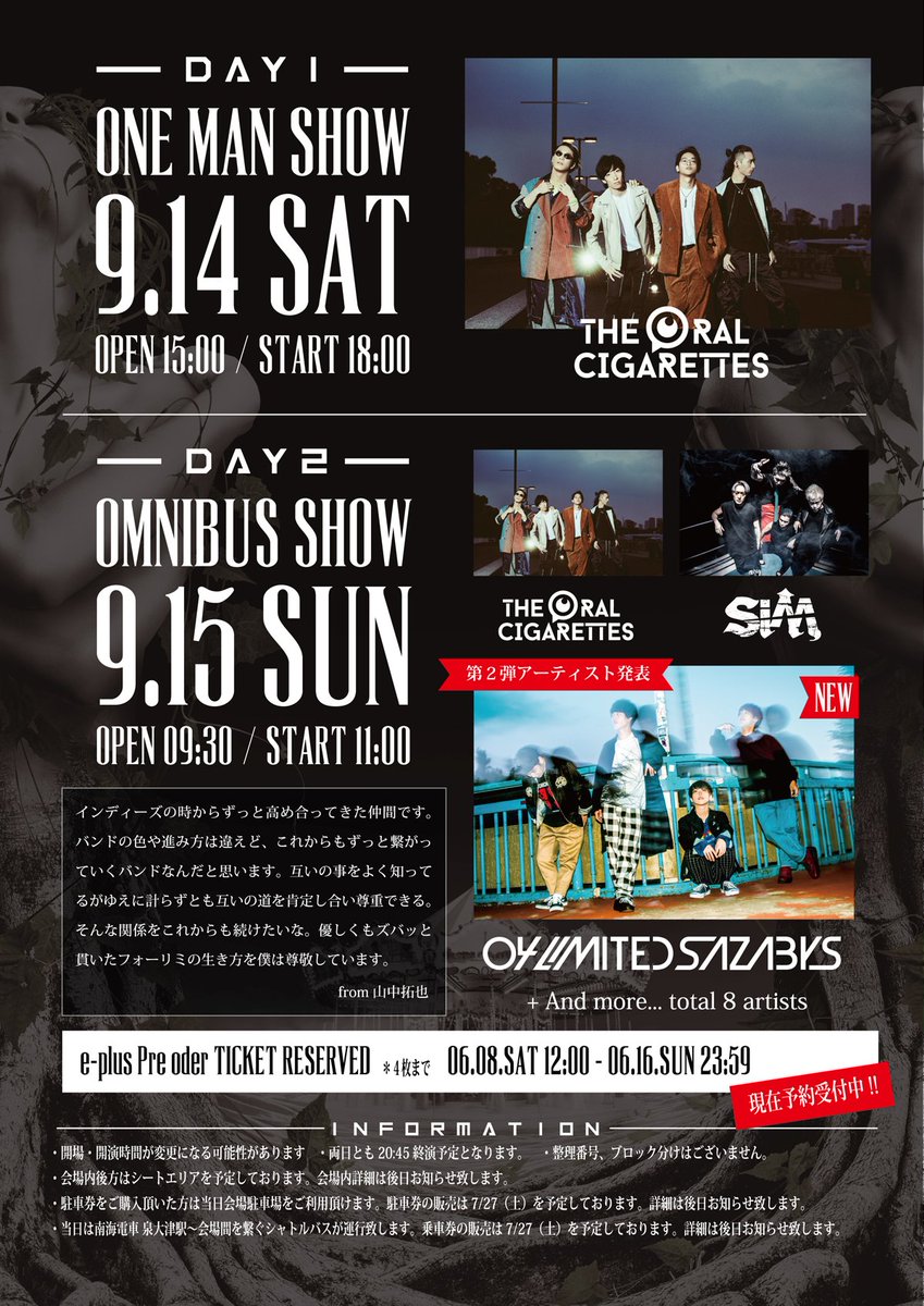 7/27 10:00よりチケット/駐車券/シャトルバス券/お帰り直行バス券(なんば/梅田)が発売開始となりますので、よろしくお願いします!