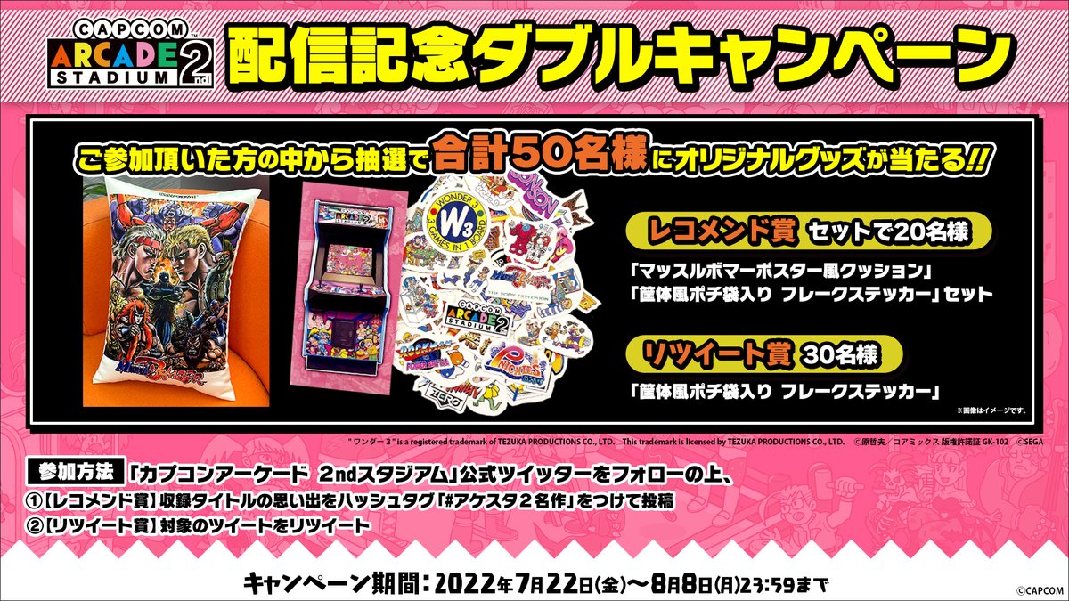 『カプコンアーケード 2ndスタジアム』配信記念ダブルキャンペーン開催!レコメンド賞、リツート賞のダブルキャンペーンに応募しよう!