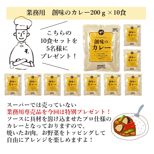 実は売上の60%が業務用商品である創味食品の『業務用 創味のカレー』が当たる、#プレゼントキャンペーン を公式インスタにて開催中です!