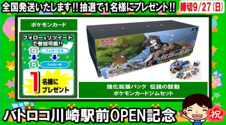 【リツイートキャンペーン】#ポケカ バトロコ川崎駅前OPEN記念✨ 伝説の鼓動 ジムセット を抽選で1名様にプレゼント🎁 1⃣このアカウントをフォロー 2⃣このツイートをリツイート 【締切】9/27 【発表】9/28(予定) フォローお願いします! #カワロコ