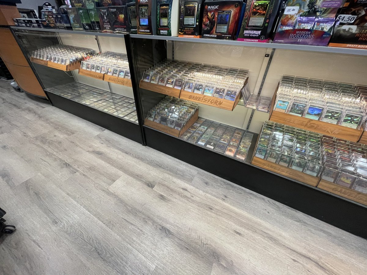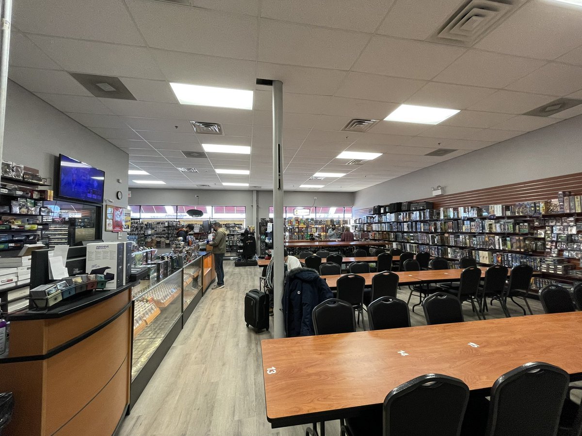 シカゴの郊外にある、多分いちばんすごいカードショップ。ガラスケースの品数がすばらしい。ワクワクする。じかんがはやいからひといないけど、すごい人気らしい #mtg #edh #カードショップ