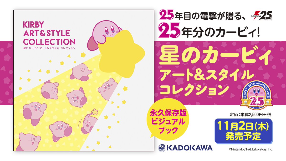 『星のカービィ』の25年分のアートが収録された、完全保存版ビジュアルブック『星のカービィ アート&スタイル コレクション』が11月2日に発売決定! 同い年の電撃もカービィの25周年を盛大にお祝いします!