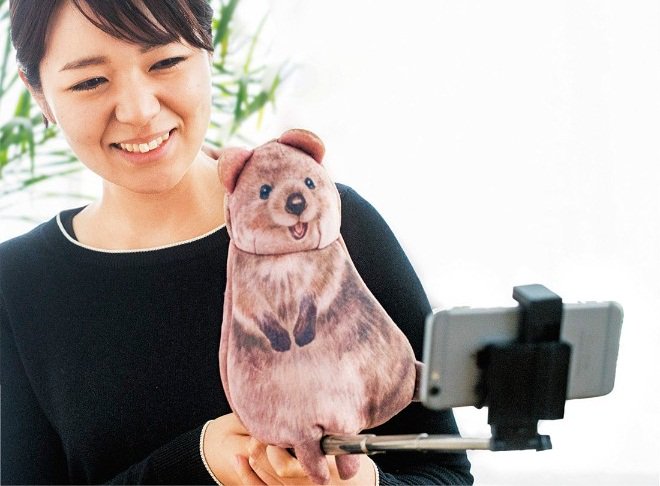 ポーチの底にクリップが内蔵されているので、自撮り棒に挟めばいつでもどこでもワラビーと一緒に自撮りOK。旅行先での記念撮影も、なんだか無性に楽しくなっちゃう!