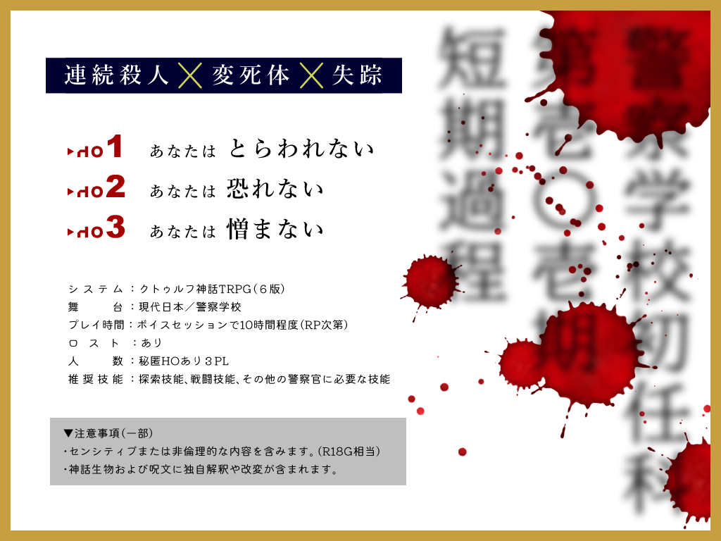 警察学校を舞台にした秘匿3PLシナリオです
