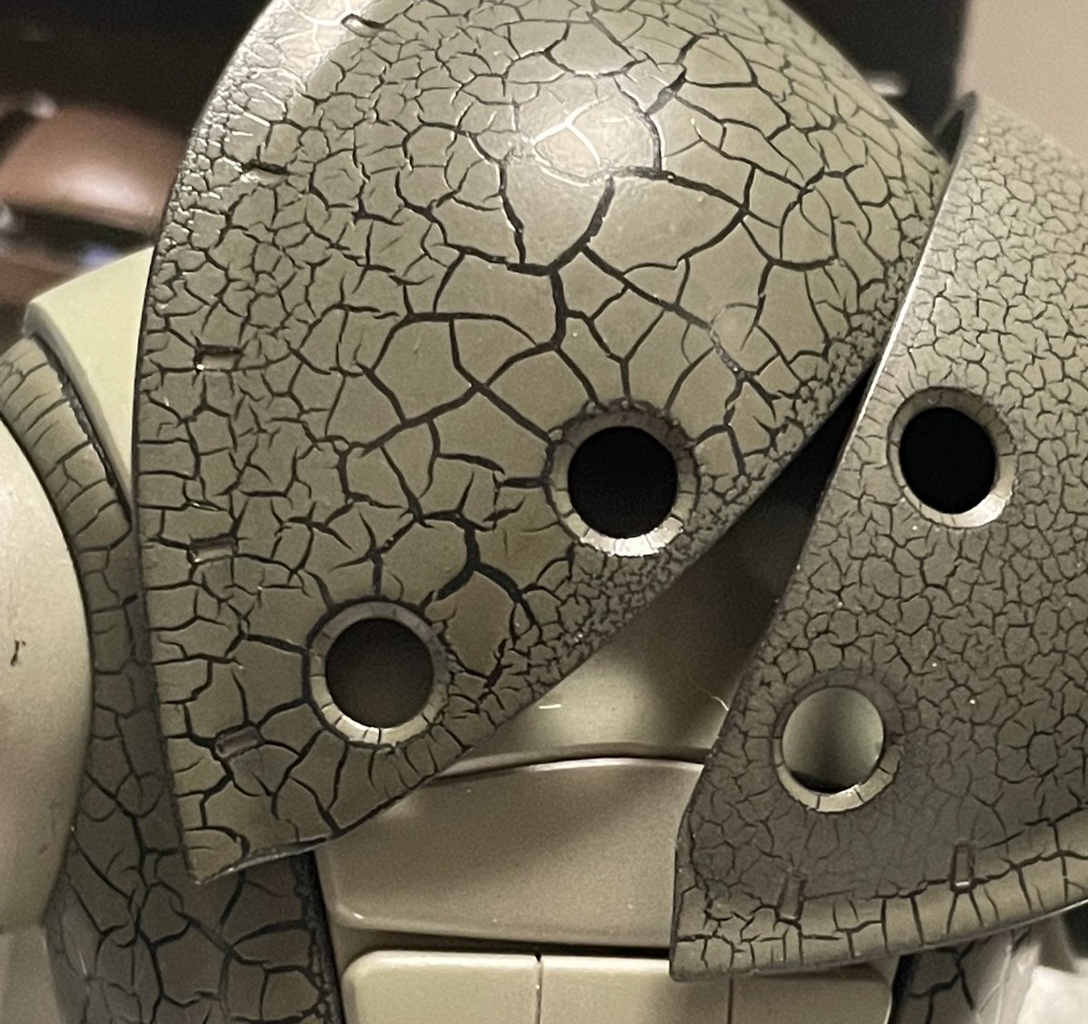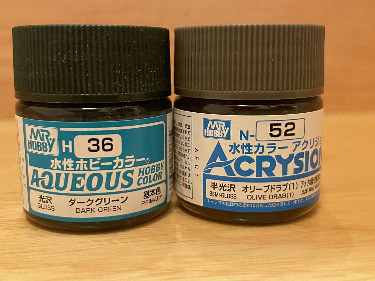 クラックの入れ方 φ(。_。*)メモメモ ・下地に水性ホビーカラーの光沢 ・乾燥してからアクリジョン(本当はつや消しがいいみたい) 今回はダークグリーンとオリーブドラブです😎