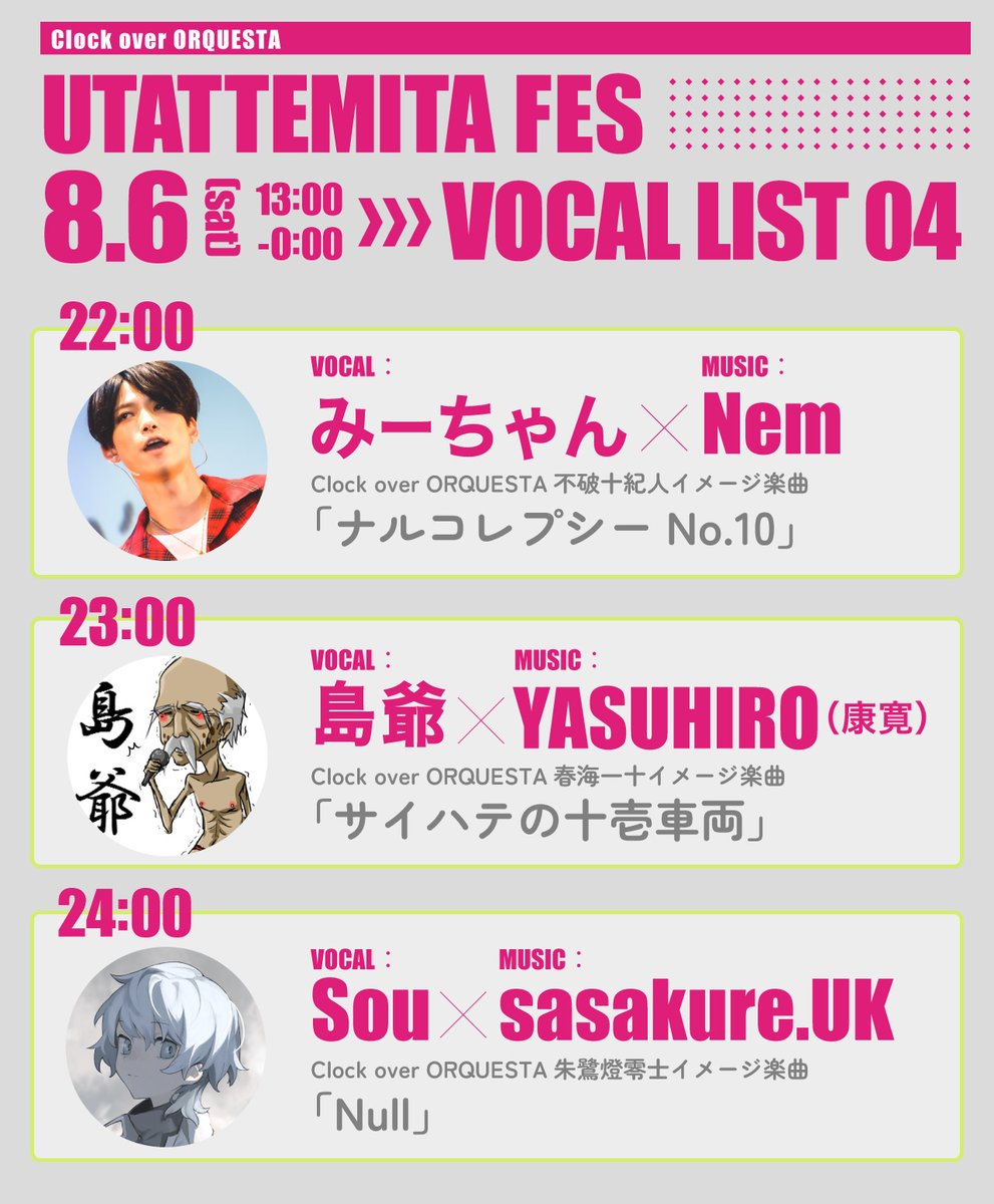 クロケスタ歌ってみたフェス 23時投稿担当の島爺です。