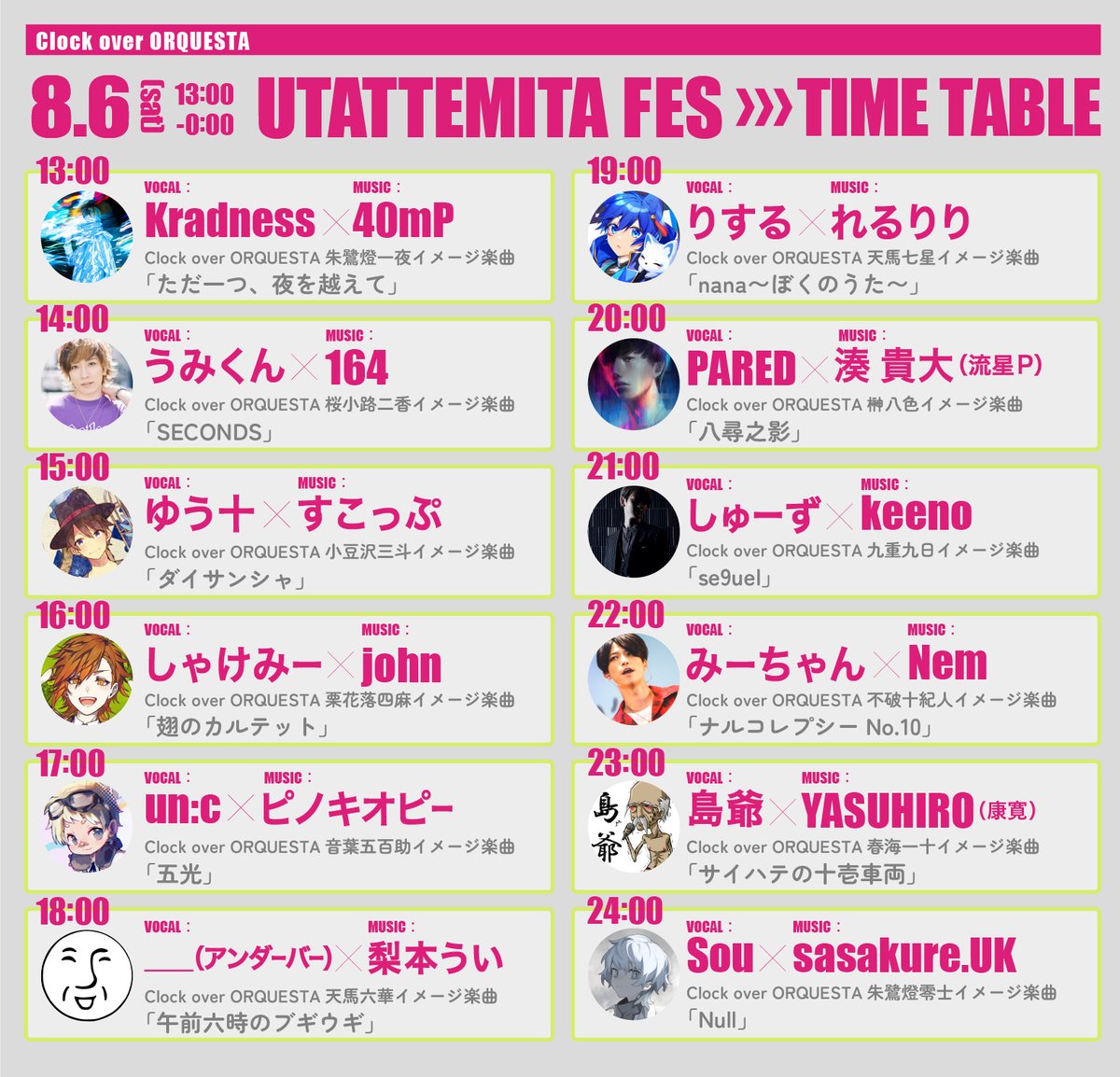 8/6(土)13:00〜0:00