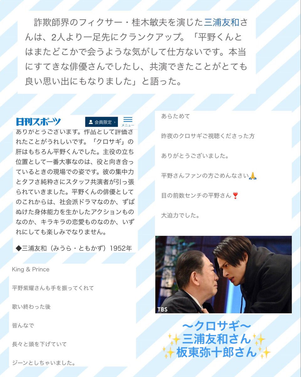 こうやって楽しみながら紫耀くんを待つ機会を与えていただき #クロサギ衣装展 に感謝です。