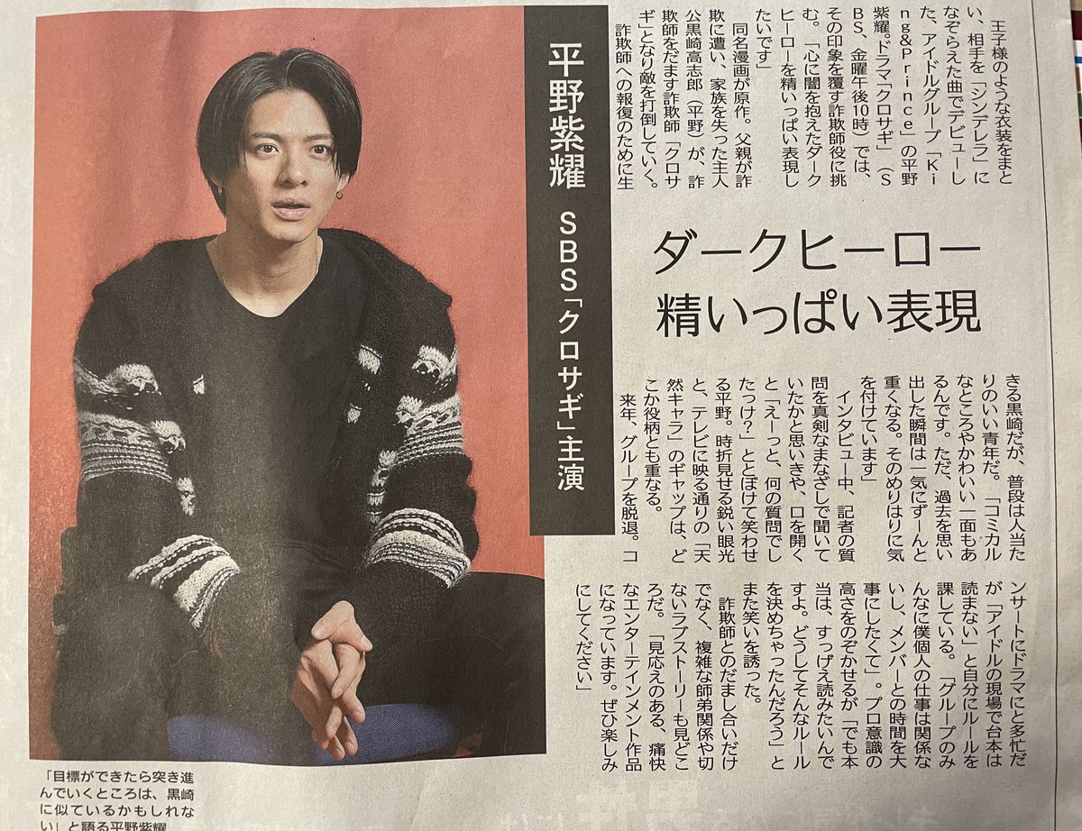 今週の「週刊スピリッツ」はドラマ『#クロサギ』主演 #平野紫耀 (#KingandPrince) さんが表紙に登場!!