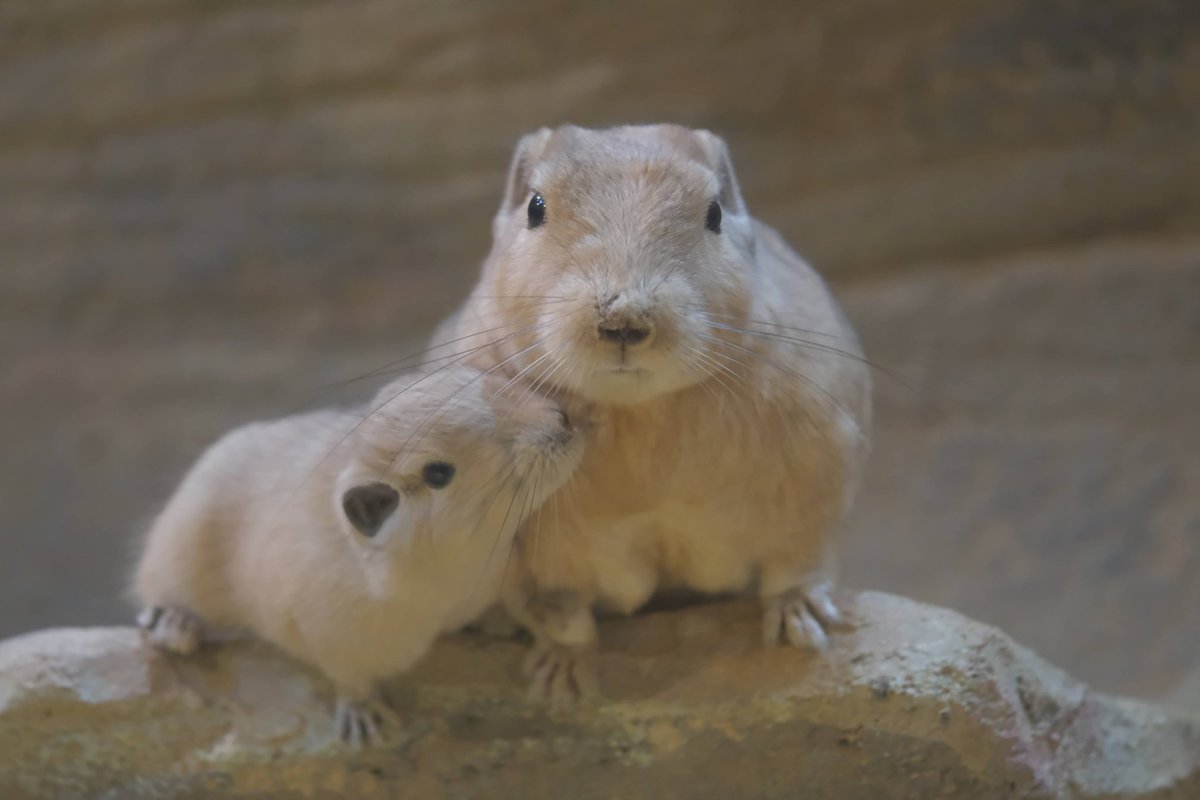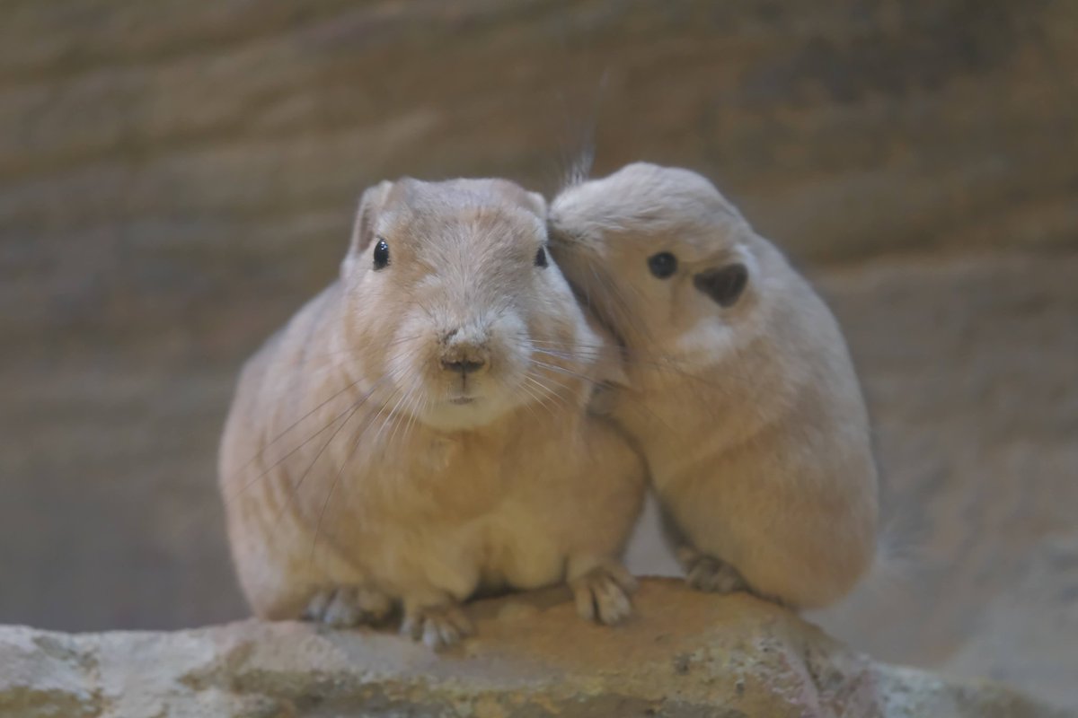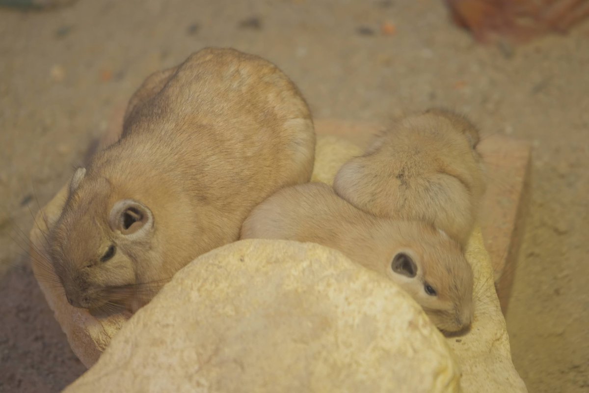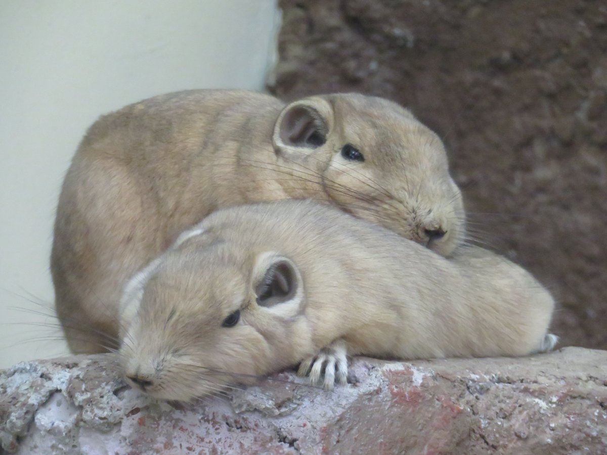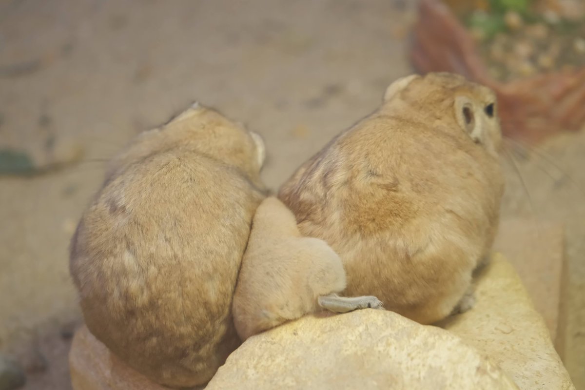 珍しいトライアングルを発見。グンディはデグーやビスカチャと違い、仲間同士でグルーミングすることが珍しいと言われています。この三頭はまんざらでもなさそうですね。