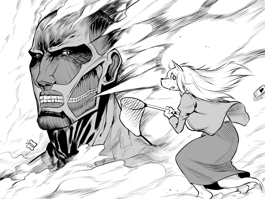 これはちょうちょを捕まえにいったら、超大型巨人に出くわしてしまったケモ夫人 #ケモ夫人