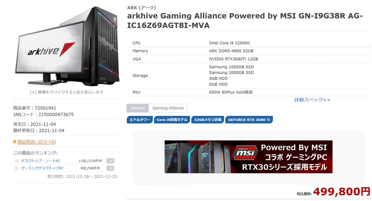 男性が本当に望んでいるのは「Intel Core i9 12900KとRTX3080Ti搭載パソコン」です!