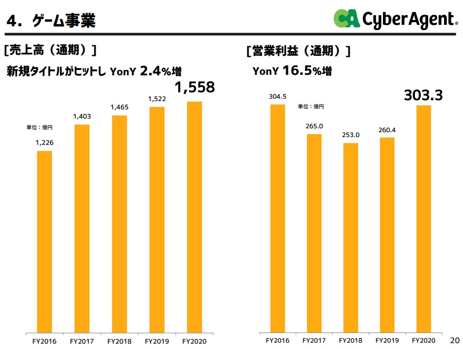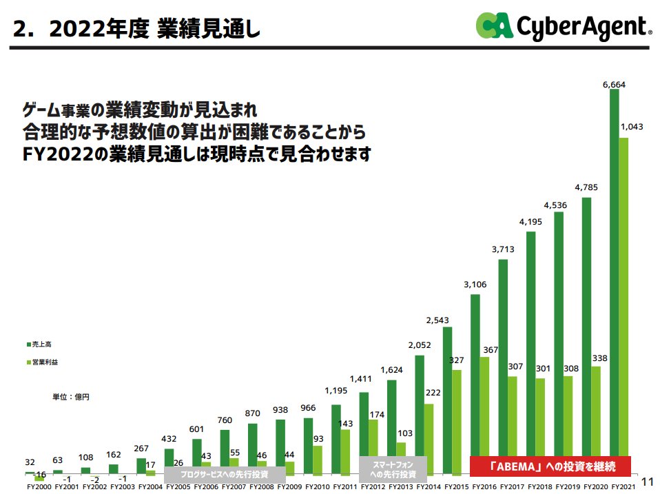 リリースした2021年第2四半期から売上・営業利益が大きく伸びていて、営業利益の9割以上をゲーム事業が稼ぐ構造となっています #サイバーエージェント株主総会