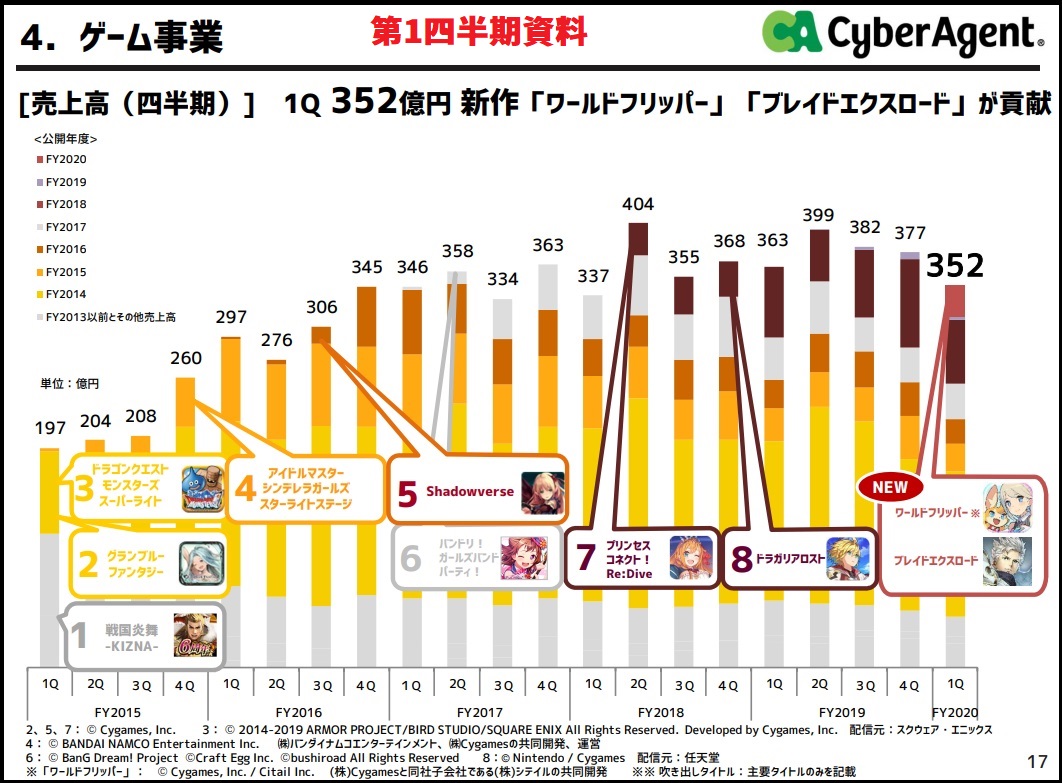 19年4Q(6~9月)の伸びは水着ガチャのせい疑惑もあるのですが、一度ダメになってからの復活という意味ではFF14を思わせる #サイバーエージェント株主総会