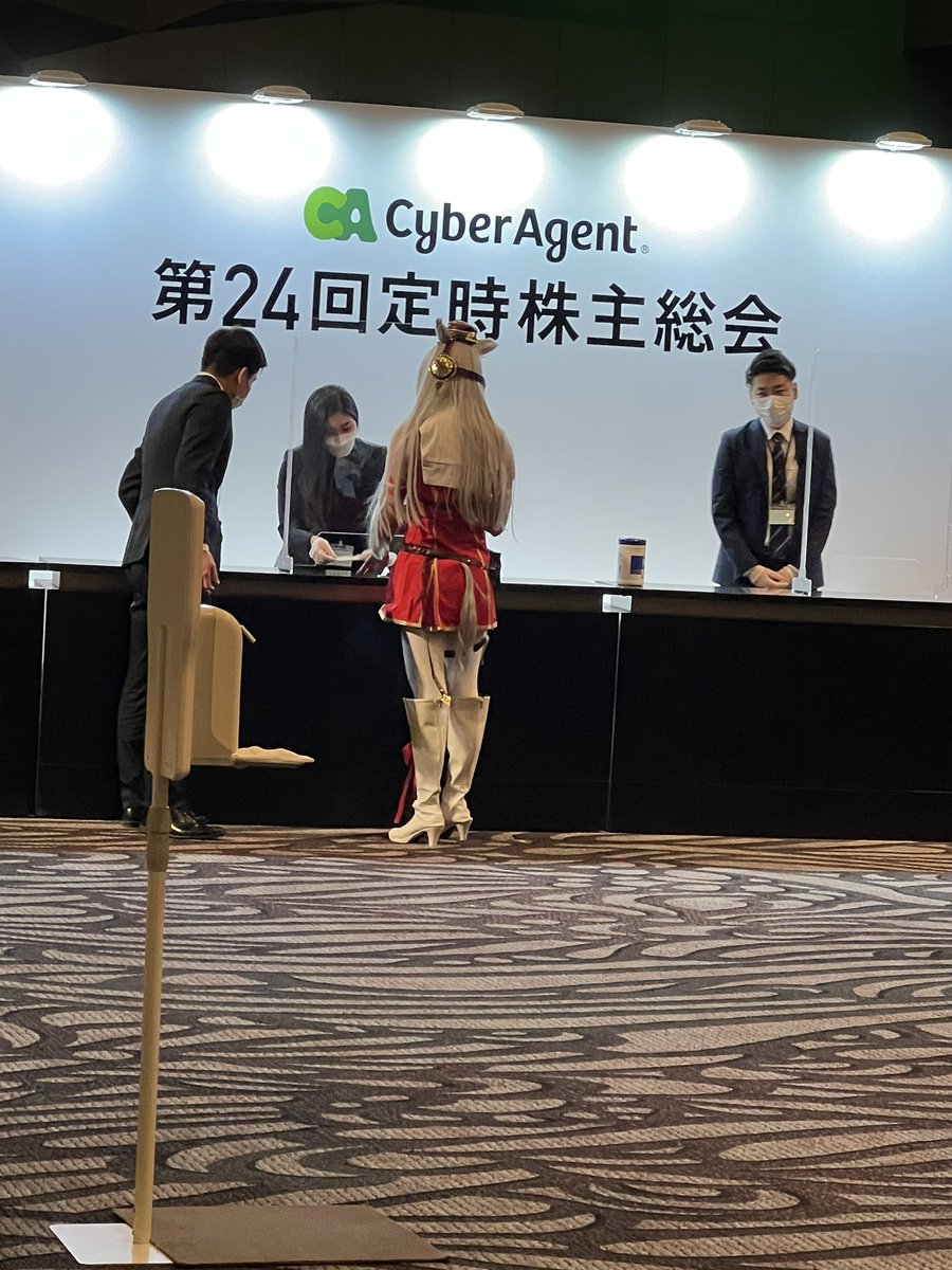なんか株主席にゴールドシップがいたような気がしたけど、きっと僕が疲れてるせいだな・・・ #サイバーエージェント株主総会