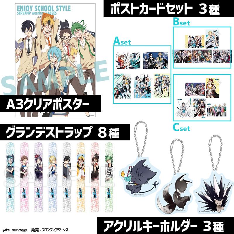 【グッズ】A3クリアポスター、ポストカードセット3種、グランデストラップ8種、動物姿の真祖達のアクリルキーホルダー3種、発売です! 発売:フロンティアワークス #サーヴァンプ