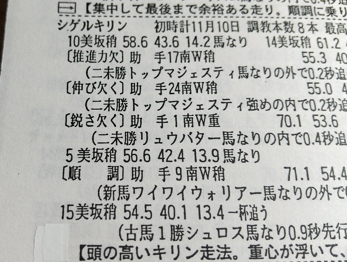 土曜中山5レースでデビューする、シゲルキリンの追い切り解説が審議対象