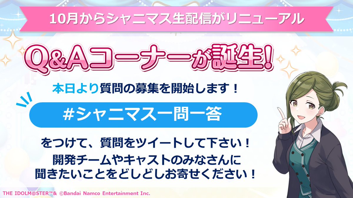 ぜひ #シャニマス一問一答 のハッシュタグをつけて、質問をツイートしてくださいね♪