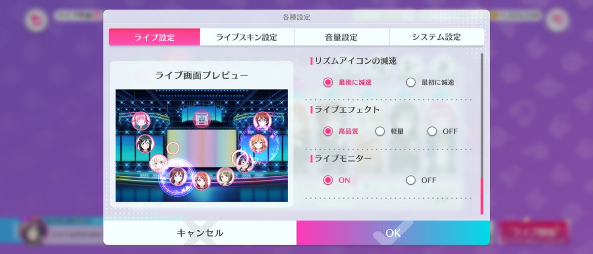 ライブは、設定を活用することで